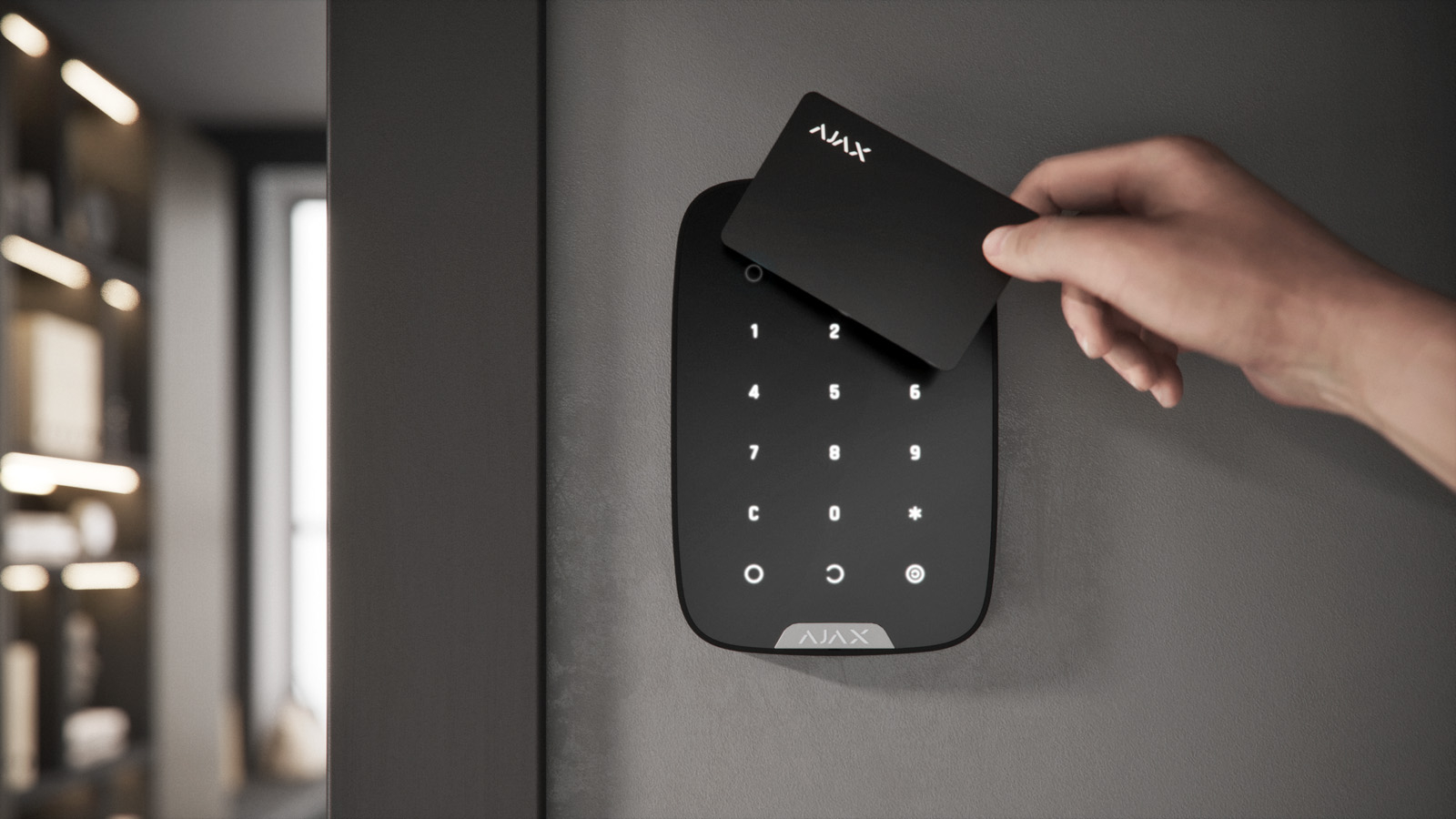 Достатъчно е, за да деактивирате алармената система, да доближите Pass картата към четеца на клавиатурата за сигурност. Картата е защитена от копиране и фалшифициране. Устройството ви позволява да управлявате режимите на сигурност без достъп до приложението Ajax, акаунта и паролата.