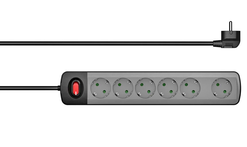Разклонител HAMA 223059: 6 гнезда шуко, 1.5 метра кабел, осветен ключ