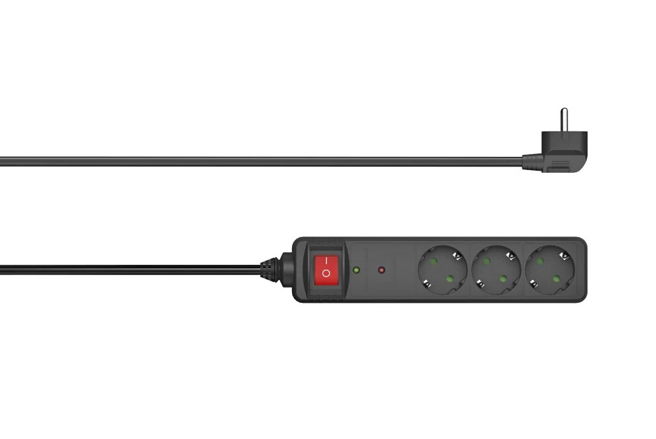 Разклонител HAMA 223151: 3 гнезда шуко, 1.4 метра кабел, осветен ключ, защита от пренапрежение