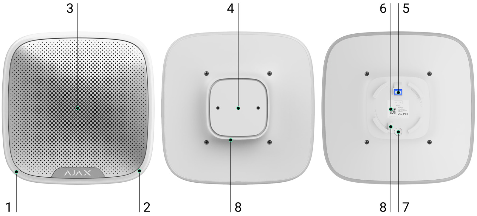 Сила на звука на алармата: от 85 до 113 dB на разстояние 1 метър. Регулира се от приложението Ajax.