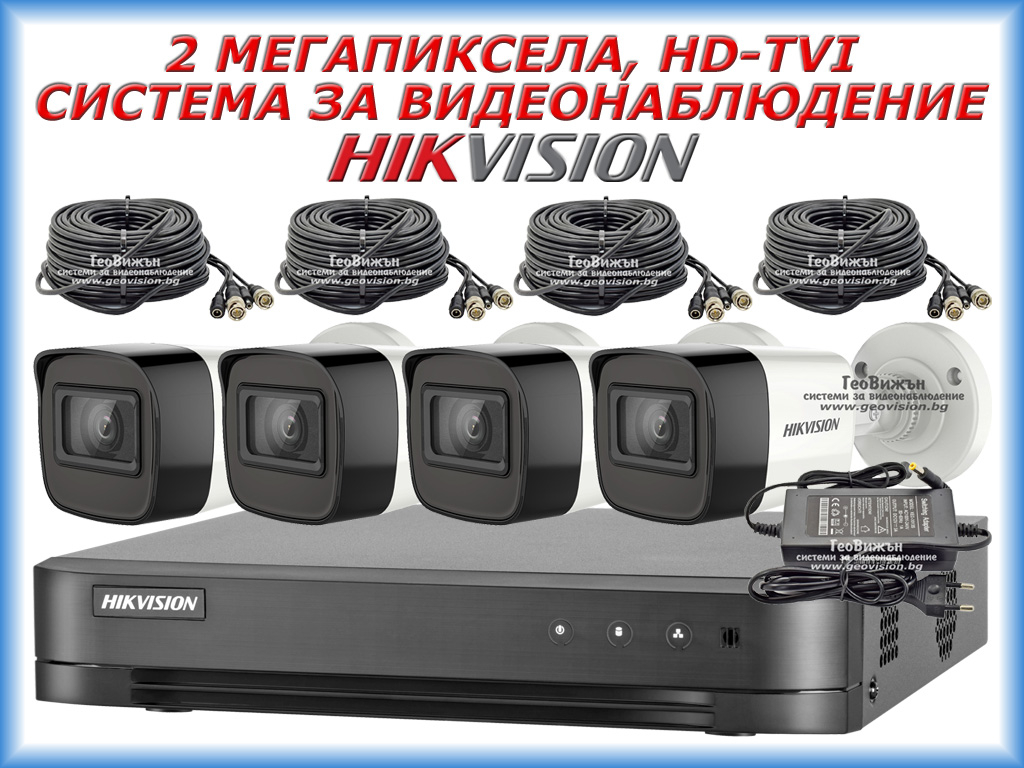 СИСТЕМА ЗА ВИДЕОНАБЛЮДЕНИЕ HIKVISION - 2 MPX, HD-TVI