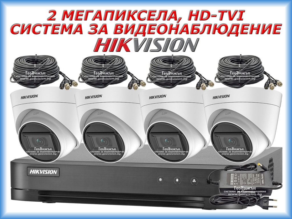 СИСТЕМА ЗА ВИДЕОНАБЛЮДЕНИЕ HIKVISION - 2 MPX, HD-TVI