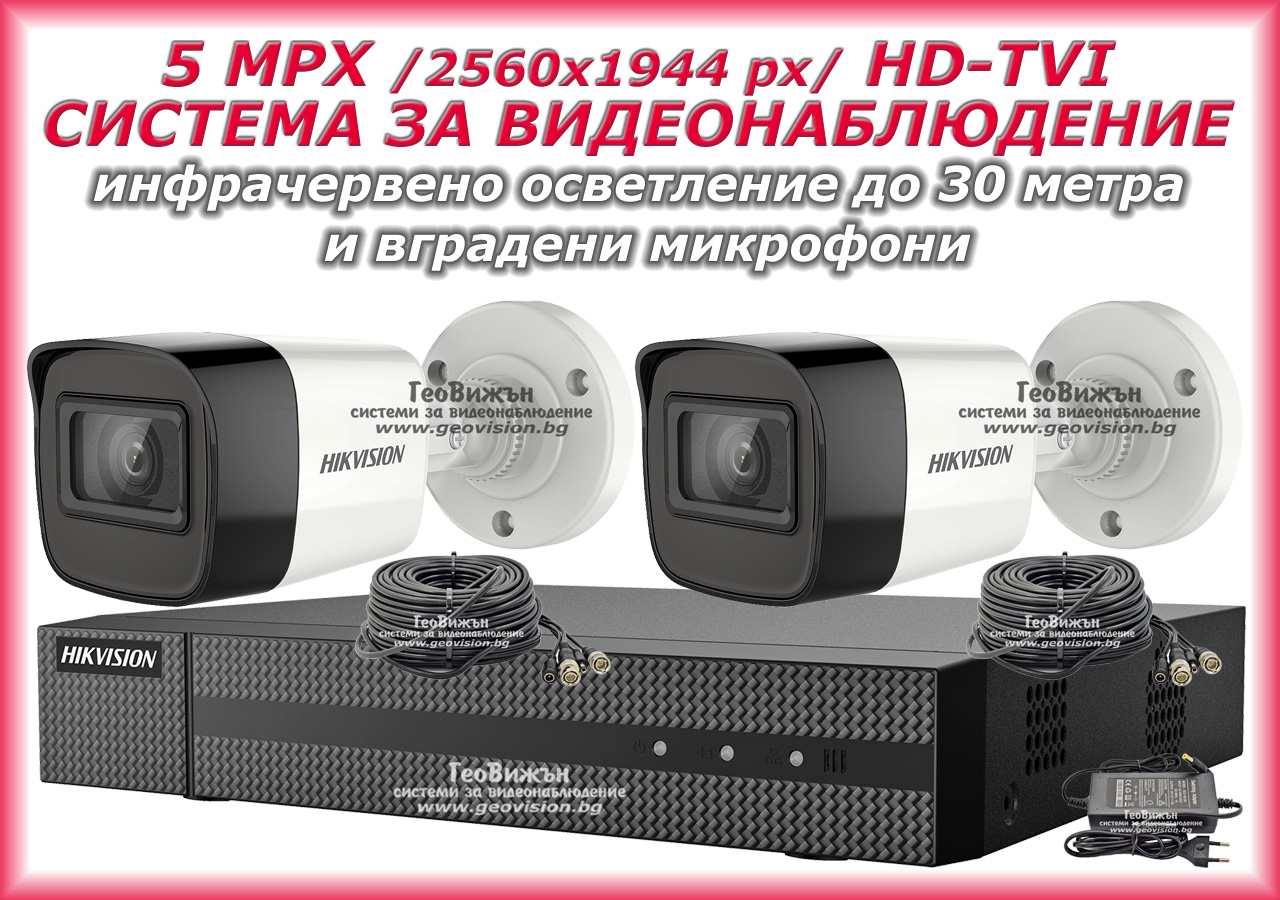 СИСТЕМА ЗА ВИДЕОНАБЛЮДЕНИЕ HIKVISION - 5 MPX, HD-TVI