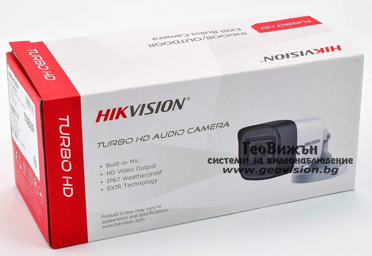 HD-TVI/AHD/CVI/CVBS корпусна камера HIKVISION DS-2CE16D0T-ITFS: 2 MPX 1920x1080, инфрачервено осветление до 30 метра, обектив 3.6 mm, вграден микрофон с Audio Over Coaxial