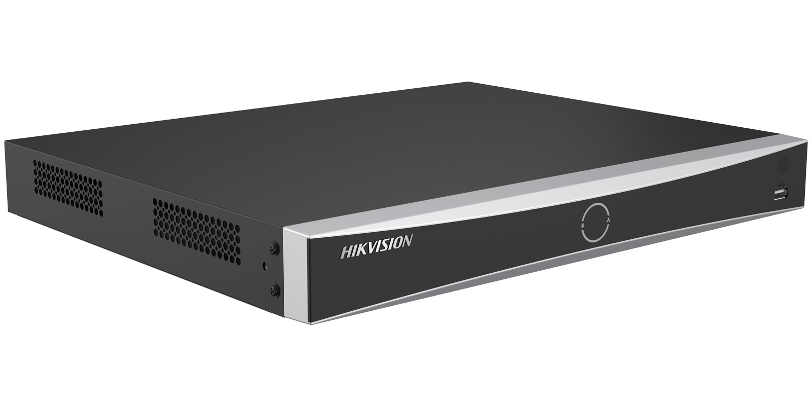 16 канален професионален AcuSeek IP мрежов видеорекордер HIKVISION: DS-7616NXI-I2/16P/VPro. С вградени 16 PoE порта. Поддържа 16 мрежови IP камери до 12 MPX. 2 SATA порта