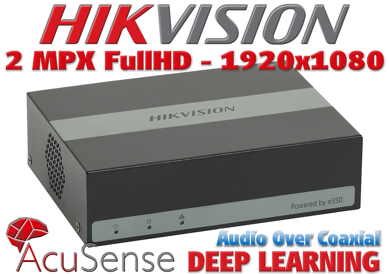 4 канален eDVR AcuSense цифров видеорекордер HIKVISION DS-E04HQHI-B. Поддържа 4 HD-TVI камери до 2 MPX + 1 IP камера до 6 MPX. С вграден eSSD диск 512 GB. С Audio Over Coaxial
