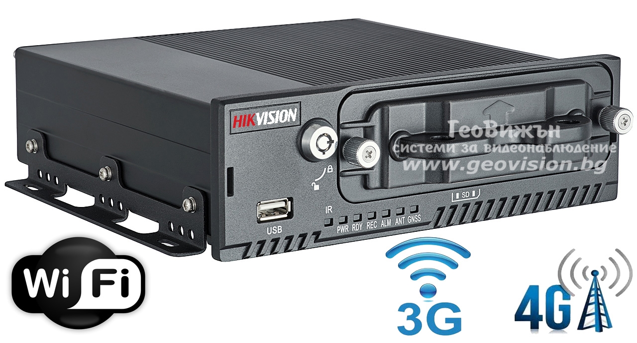 4 канален мобилен HD-TVI цифров видеорекордер за видеонаблюдение и запис в превозни средства: HIKVISION DS-MP5504/GLF/WI58 - 2 мегапиксела, с вграден 3G и 4G модул и Wi-Fi модул