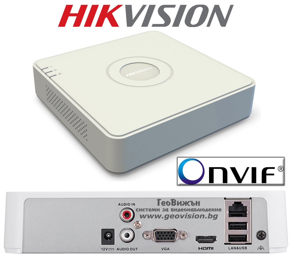 Без твърд диск - поддържа 1xSATA до 4 TB, с мишка, 100 MBit LAN, 2xUSB 2.0, H.264 компресия, HDMI (1920x1080) и VGA изходи, Меню на Български език, 1 аудио изход. Наблюдение и управление през Интернет от друг компютър, таблет или смартфон. Без PoE захранване.