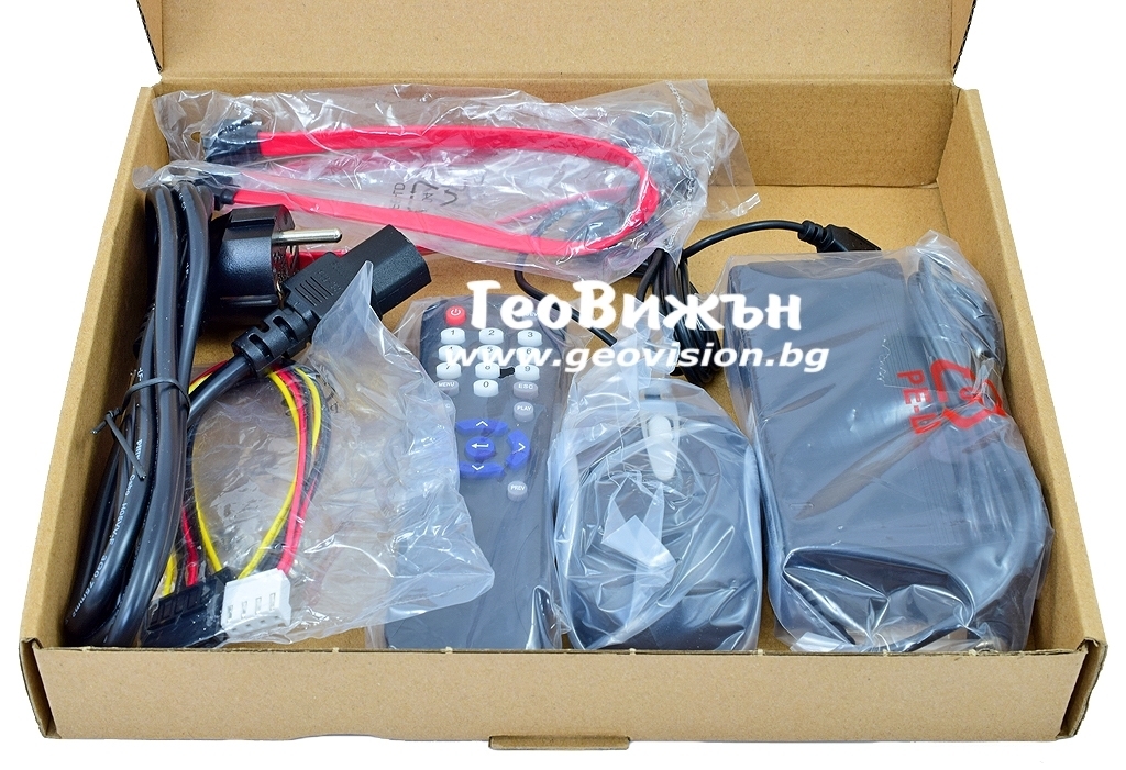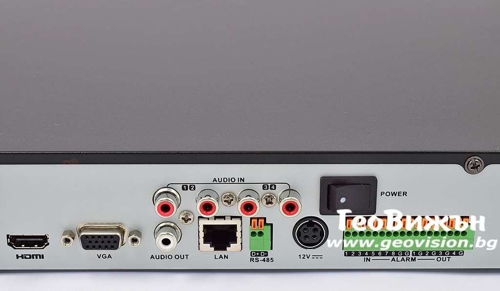 Без твърд диск - поддържа 2xSATA до 6 TB, USB мишка, 1 Gbit LAN, 1xUSB 2.0 и 1хUSB 3.0 порта, H.264/H.264+ компресия, RS-485, HDMI 4K, VGA и аналогов BNC изход, Меню на Български език. 8 алармени входа и 1 изход. 4 звукови входа за микрофони. Наблюдение и управление през Интернет от друг компютър, таблет или смартфон.