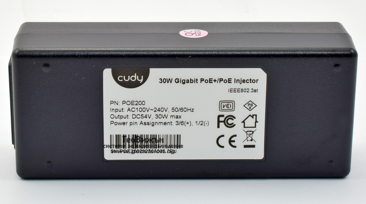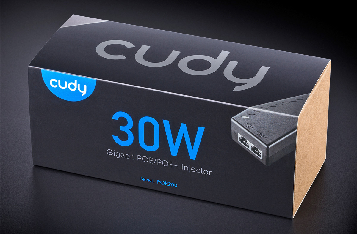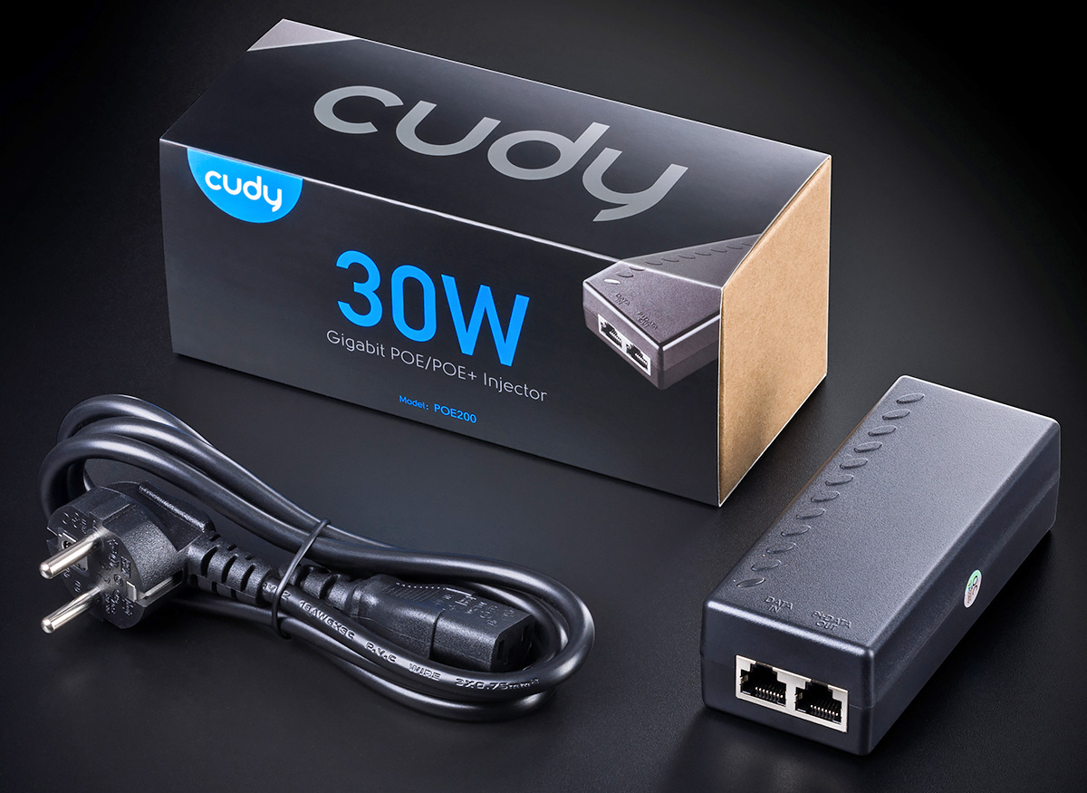 Cudy POE200: PoE инжектор за захранване на IP камери с 1 x 10/100/1000 Mbps PoE порт + 1 x 10/100/1000 Mbps uplink порт, DC54V - 30 W