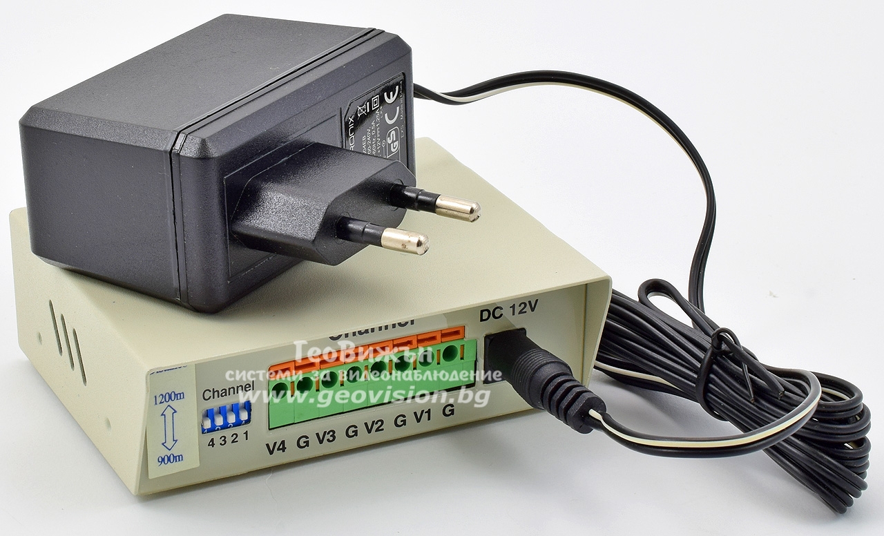 С това устройство, може да се пуснат до 4 аналогови /CVBS/ камери на разстояние до 1200 метра, с LAN кабел.