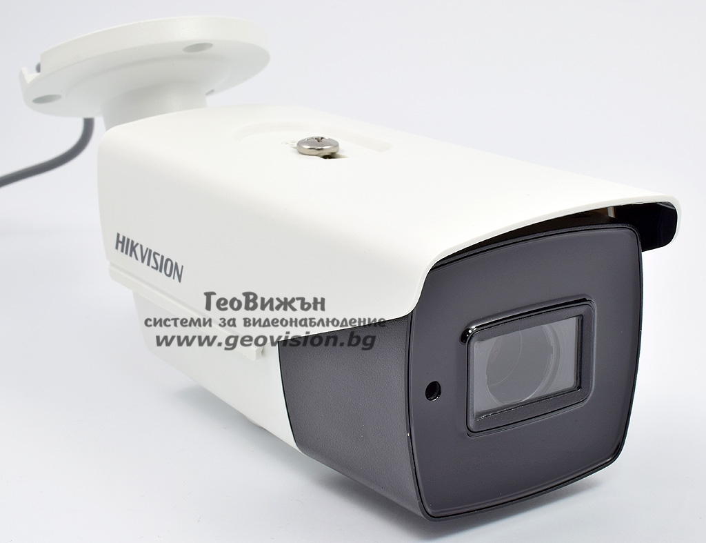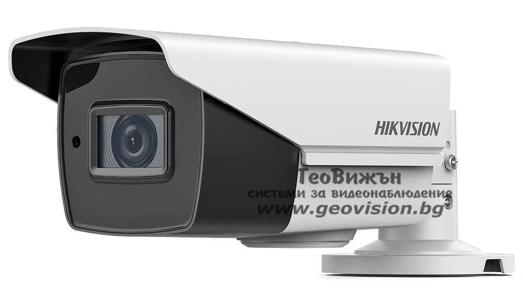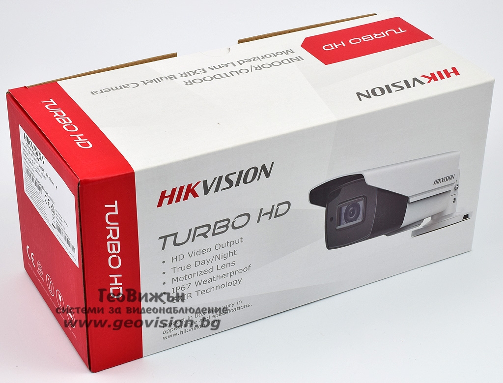 Цветна водоустойчива камера с интелигентно EXIR инфрачервено осветление до 40 метра, 5 MPX CMOS Image сензор, Ultra Low Light - минимално осветление 0.008 лукса - вижда при пълен мрак, механичен инфрачервен филтър, моторизиран варифокален обектив 2.8-12 mm с ъгъл на видимост от 102 до 31 градуса, Video Frame Rate: 2560x1944@20fps, HD BNC видео изход, D-WDR, BLC, AWB, AGC, AES, DNR шумов филтър, IP67, DC12V - 9W, Алуминиев корпус, за външен монтаж. OSD меню за настройки управляващо се по Hikvision Coaxitron протокол. Със стойка и козирка. Обектива може да се управлява от видеорекордера, друг компютър, таблет или смартфон. Работи само в HD-TVI режим.