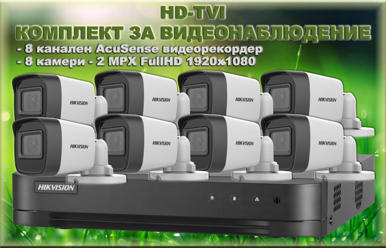 КОМПЛЕКТ ЗА ВИДЕОНАБЛЮДЕНИЕ - 8 камери x 2 MPX + 8 канален AcuSense DVR