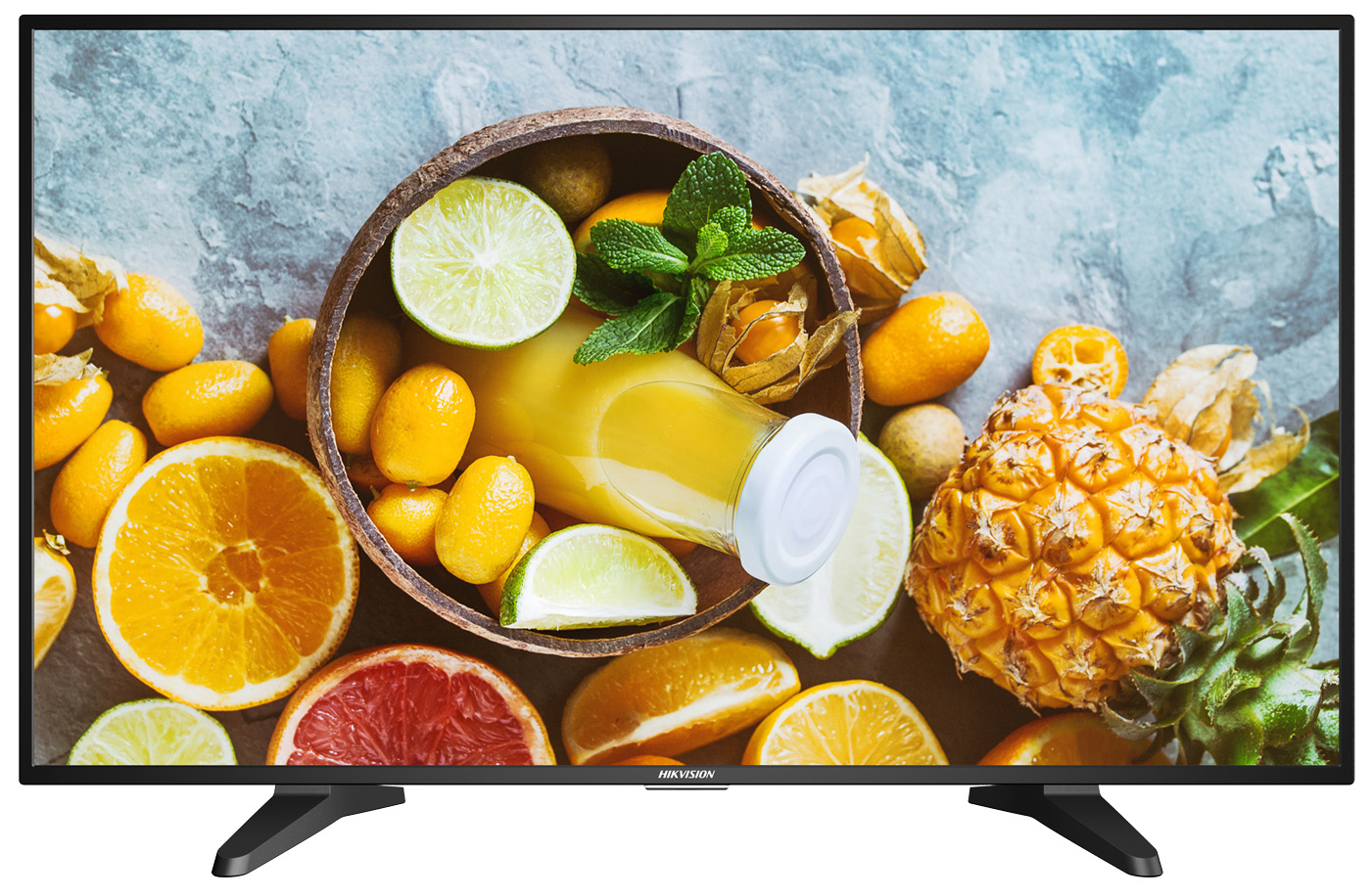 Монитор HIKVISION DS-D5043QE: размер на екрана 43 инча, резолюция FullHD 1080p 1920x1080 при 60 Hz, IPS панел, HDMI и VGA видео входове, вградени високоговорители