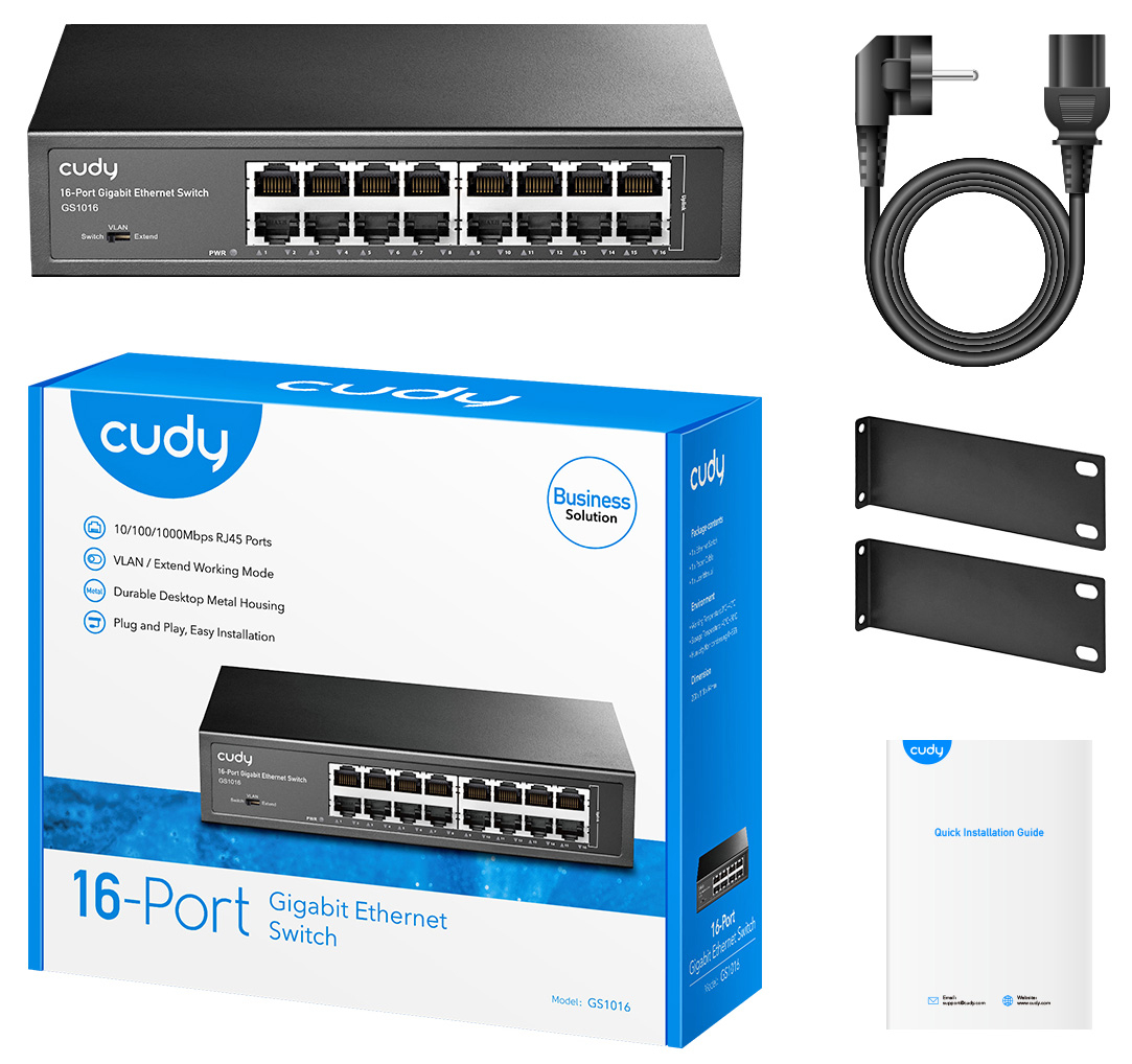 Мрежов суич без PoE захранване CUDY GS1016: 16 x RJ45 LAN порта, скорост 10/100/1000 Mbps