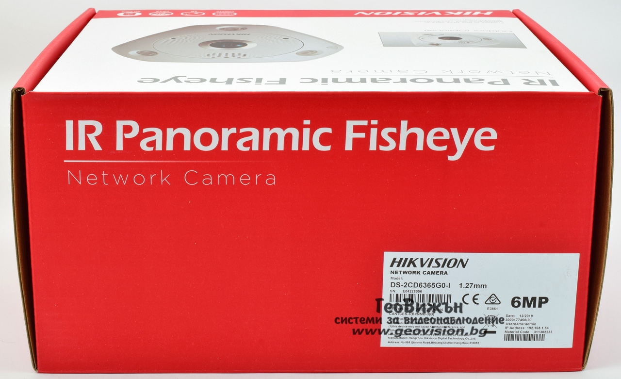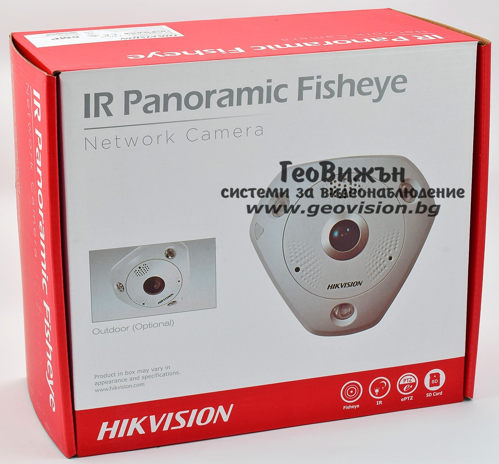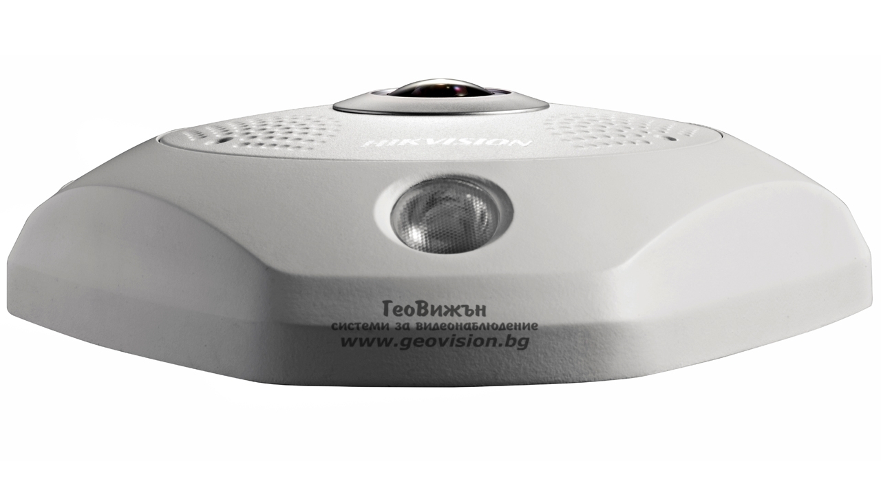Широкоъгълна 360 градуса мрежова IP камера HIKVISION DS-2CD6365G0-IS(B): 6 MPX, DeepinView технология с DEEP LEARNING алгоритми за анализ на хора и човекопоток, обектив 1.27 mm, микрофон и говорител