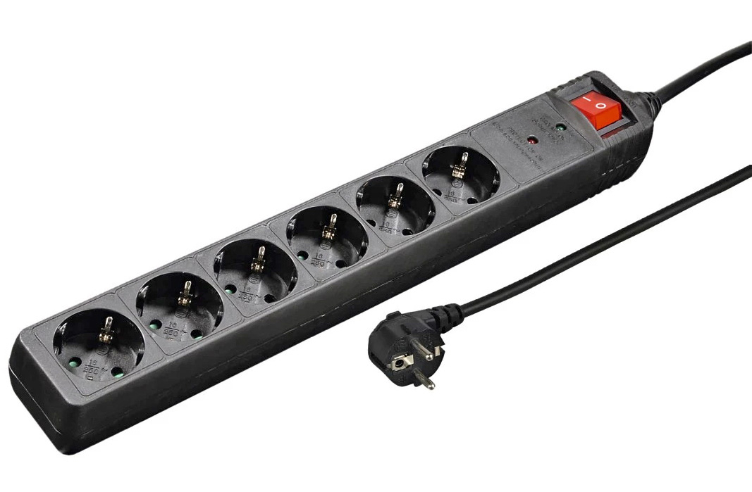 Разклонител HAMA 47779: 6 гнезда шуко, 1.4 метра кабел, ключ за включване и изключване, защита на деца, защита от пренапрежение