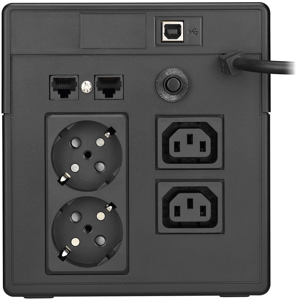 PowerWalker VI1000LCD, 1000VA 600 Watt Max, USB, 2xSchuko контакта + 2хIEC C13, 2 Батерии 12V/7 Ah, Входящо напрежение: 162-290 V AC, Изходящо напрежение: 230 V AC ±10%, Време за реакция: 2-6 ms, Активно охлаждане: НЯМА. RJ45 защита, Софтуер за управление: WinPower, LCD дисплей, Тегло: 9 кг. Ефикасност при пълно натоварване: 95%