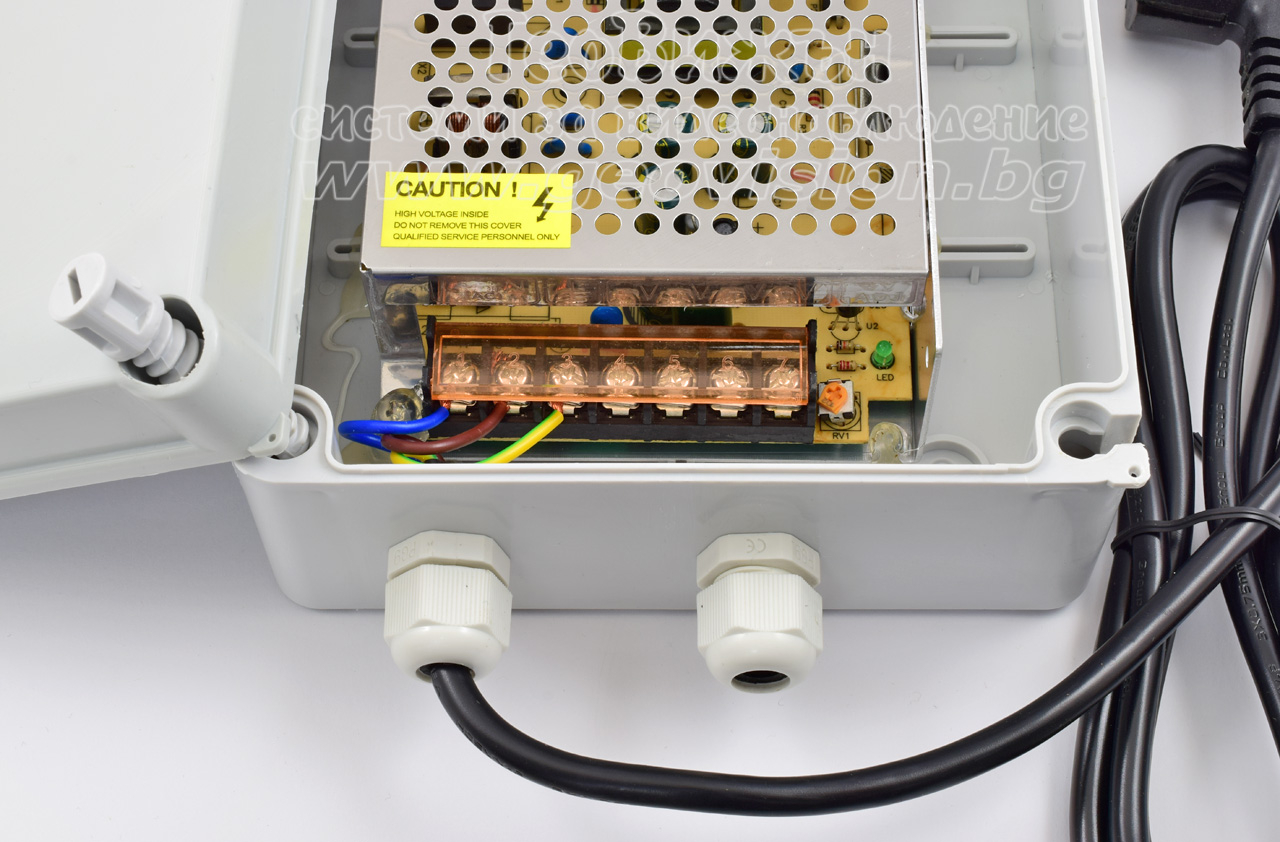 Захранващият блок е достатъчен за захранване на до 8 камери със средна консумация от 6 W всяка.