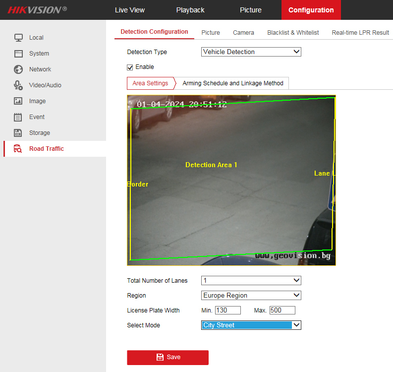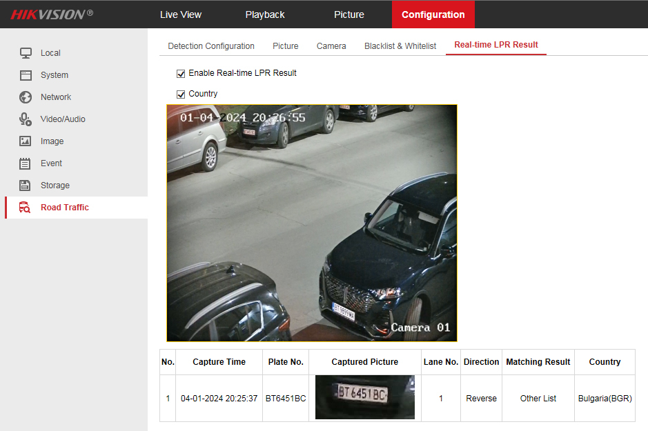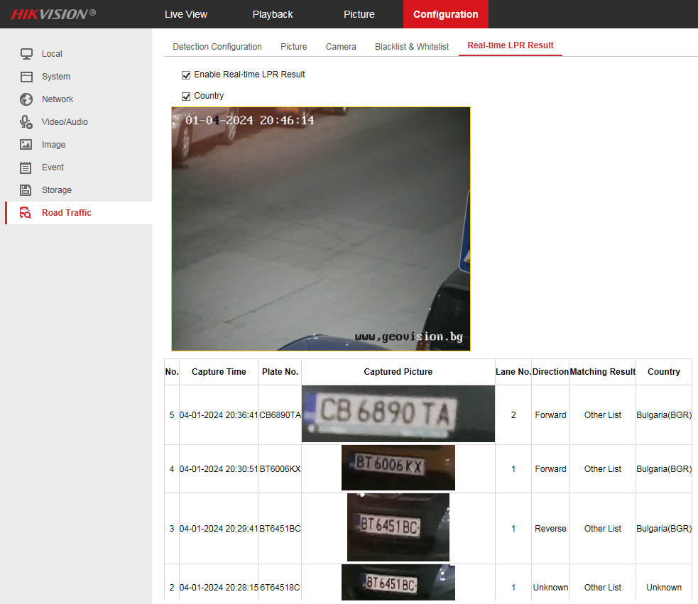 Сравнява с "бели" и "черни" списъци: Софтуерът, с който работи камерата (NVR, Hik-Central и т.н.), може автоматично да сравнява разпознатия номер със списъци от оторизирани (бели) или забранени (черни) превозни средства.