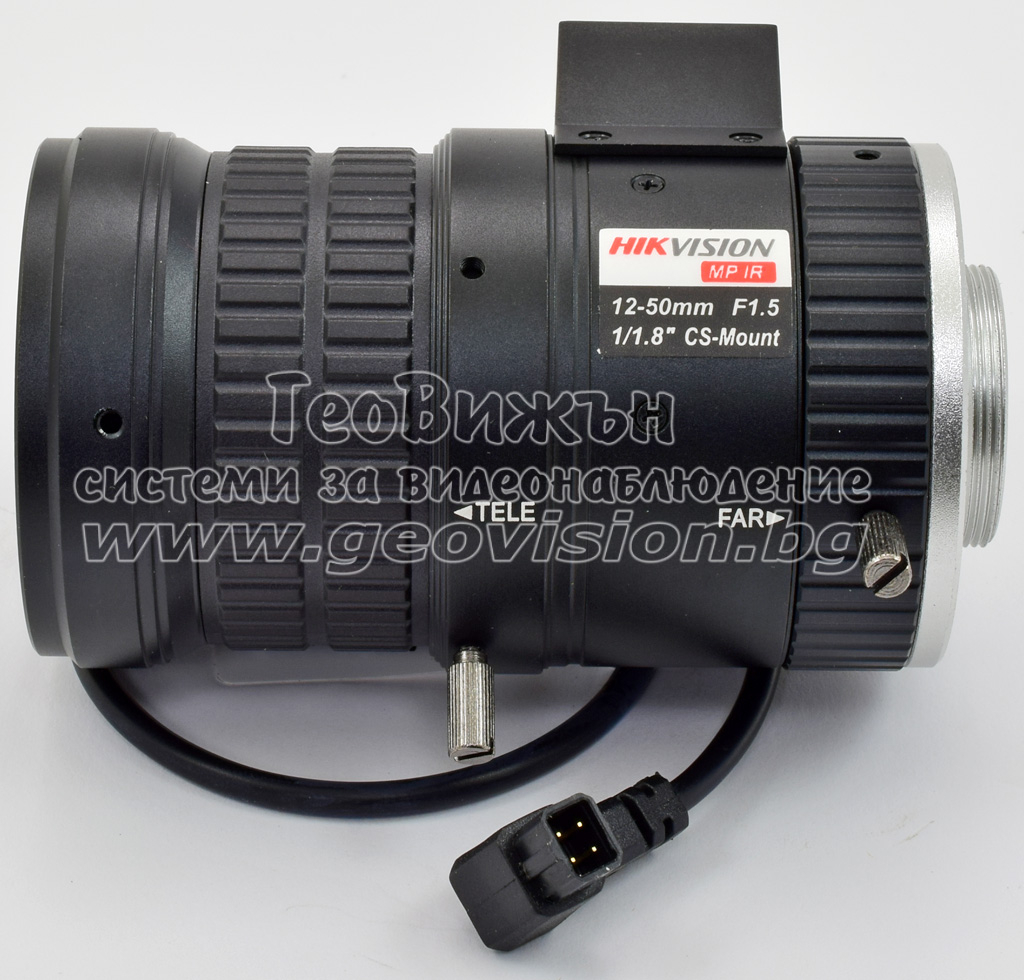 2. Варифокален обектив с автоматичен ирис HIKVISION HV1250D-MPIR: 12-50 mm, инфрачервена корекция, стъклена леща, CS-mount, 3 мегапиксела, светлосила F1.5, сензор до 1/1.8"