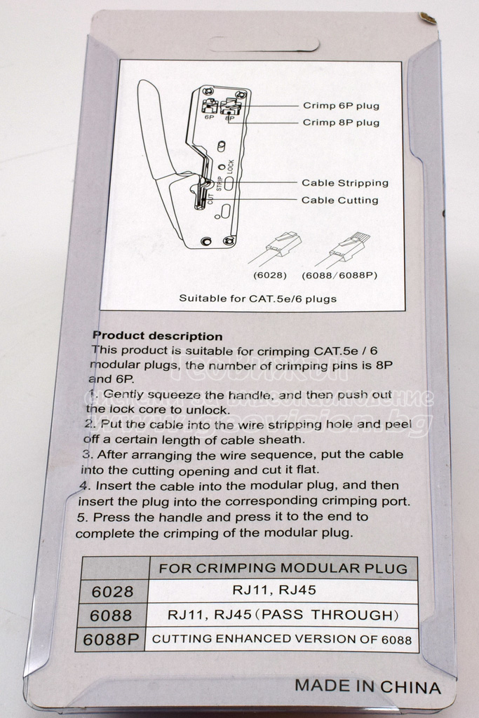 Клещи за кримпване на pass-through RJ45 и RJ11 конектори, CAT5/CAT6