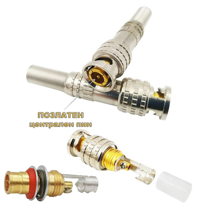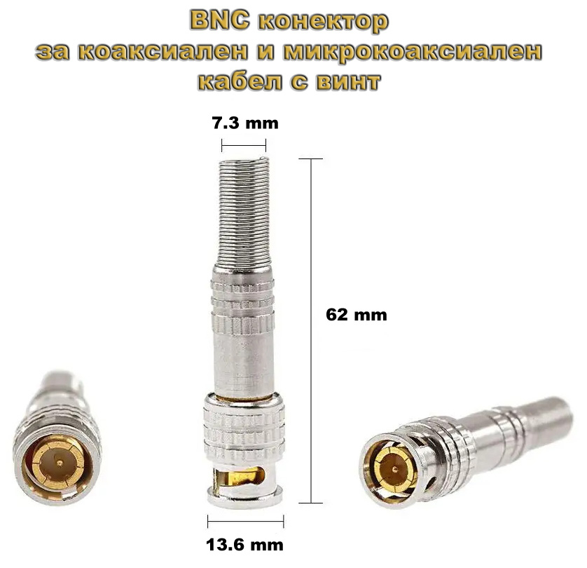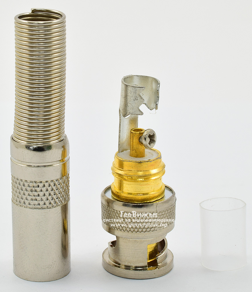 BNC конектор за коаксиален и микрокоаксиален кабел с винт: TENDTOP TT-BC20. Пружинен предпазител ф7.3 мм. Позлатен централен пин