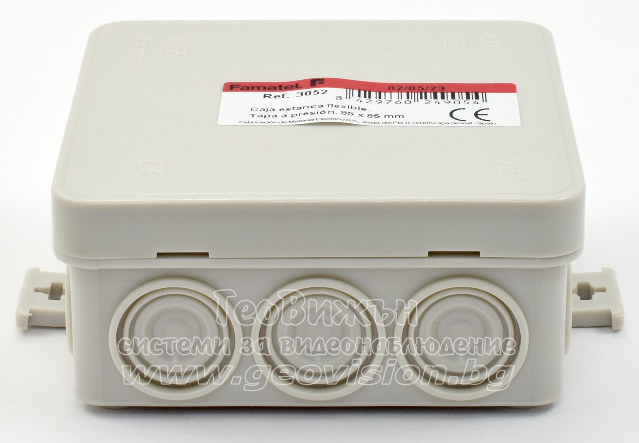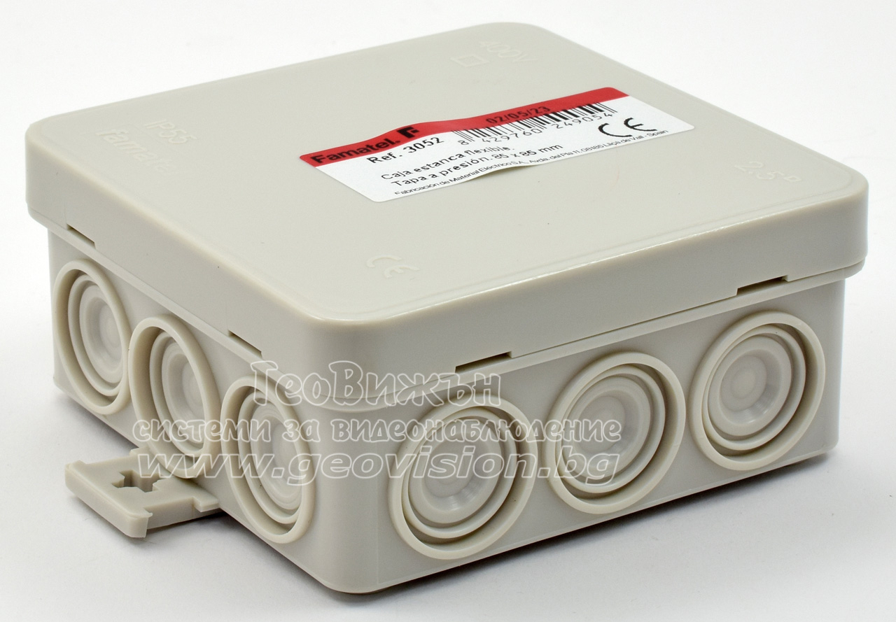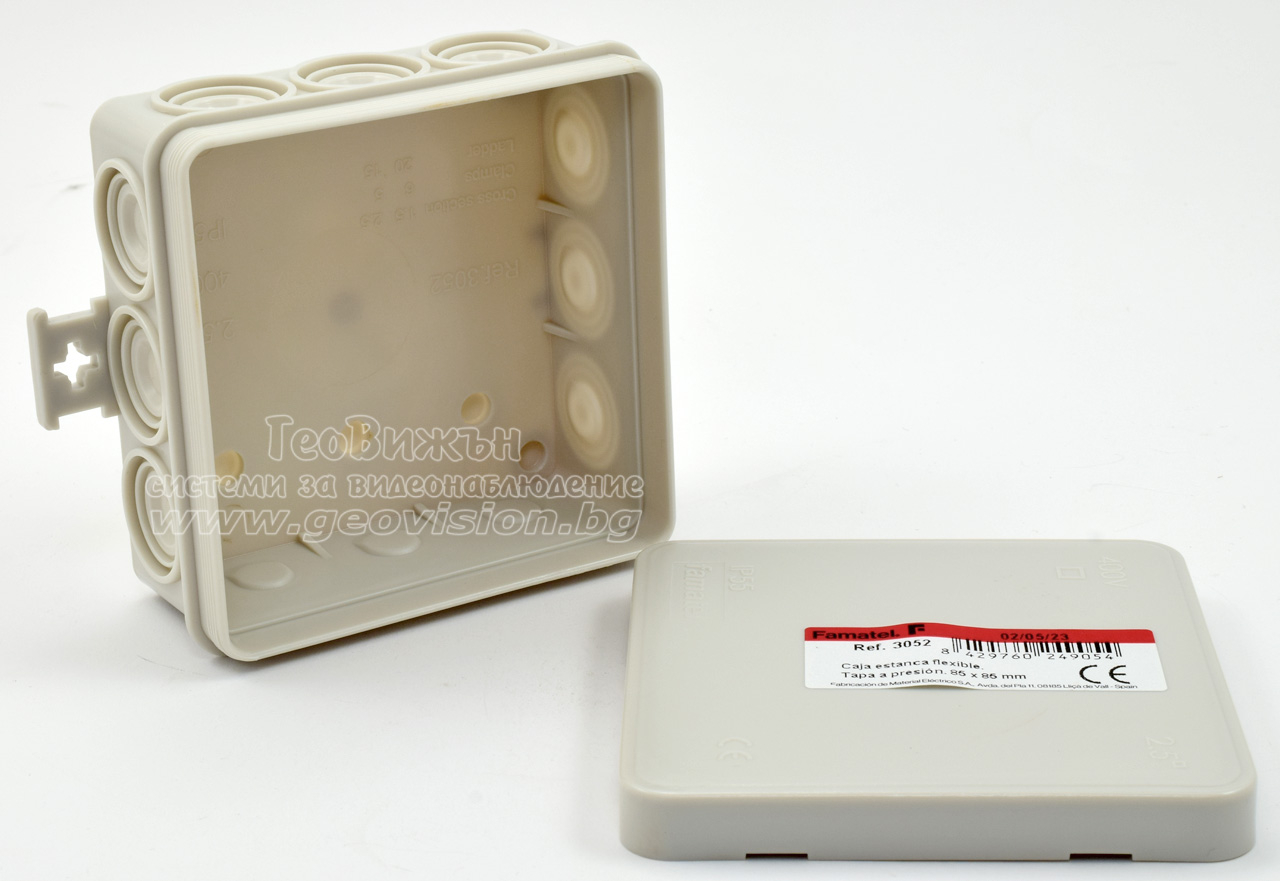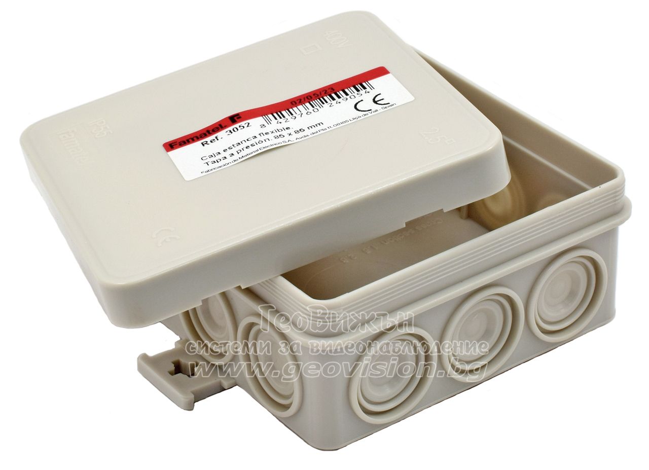 Кутия с капак FAMATEL 3052: 85x85x39 mm. Прахо и влагозащитена - IP55