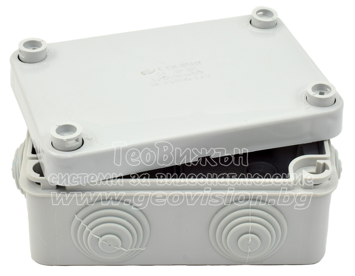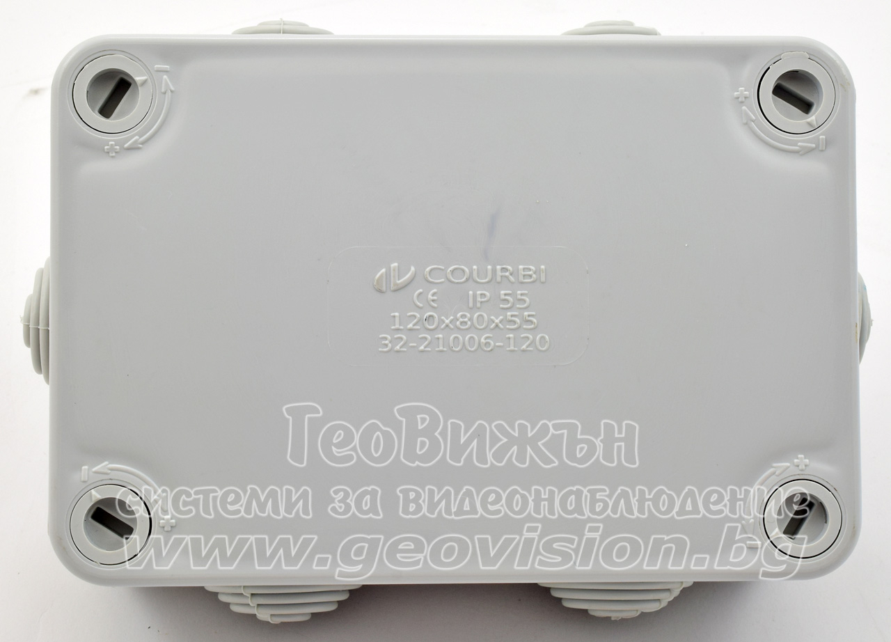 Кутия с капак на винтове COURBI 32-21006-120: 120x80x55 mm. Прахо и влагозащитена - IP55