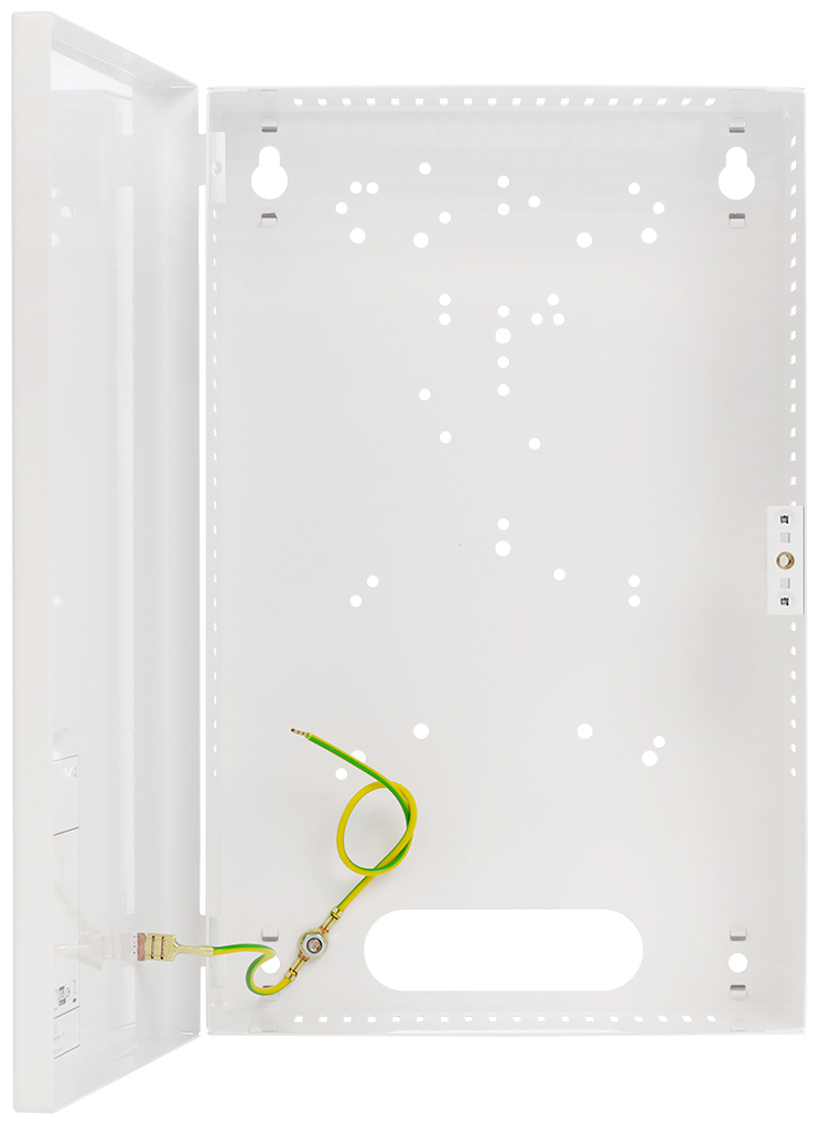 Кутията е предназначена за монтаж на отворени захранващи блокове. Изработена е от стоманен лист с дебелина 0.7 мм, в бял цвят RAL9003. Окомплектована е с комплект винтове за монтаж на захранването в кутията. Предназначена е за стенен вътрешен монтаж. Поддържа всички блокове от серията Pulsar PS, има антикорозионно покритие.