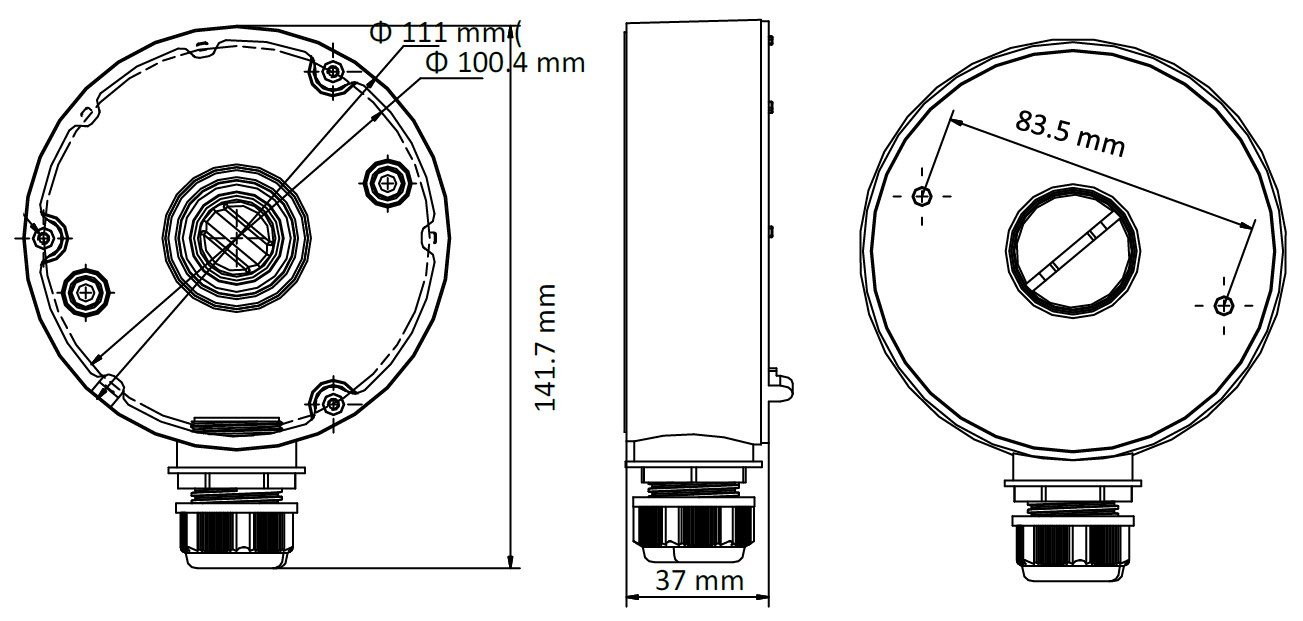 Щуцер: 1 в страничната част на основата. Капачка с диаметър и резба като на щуцера в задната част, която може да се премести на мястото на щуцера и кабелите да влязат от задната част на основата.