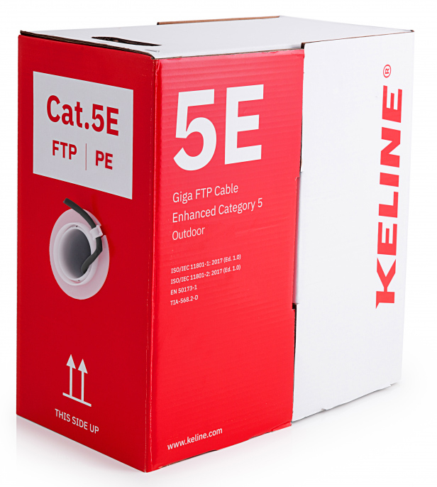 KELine KE300S24PE-RLX: Кабел мрежов FTP (F/UTP), Cat.5e, 4x2xAWG24, 300 Mhz, черен, изцяло медни жила, екраниран, PE външна изолация. За външен монтаж, устойчив на вода, влага и UV лъчи