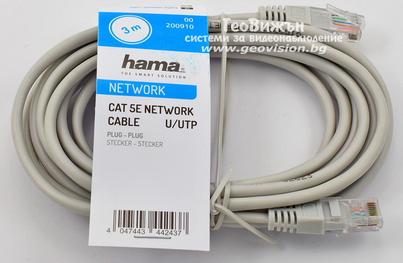 Мрежов LAN кабел HAMA: U/UTP CAT.5e, кримпнати RJ45 конектори - 3 метра