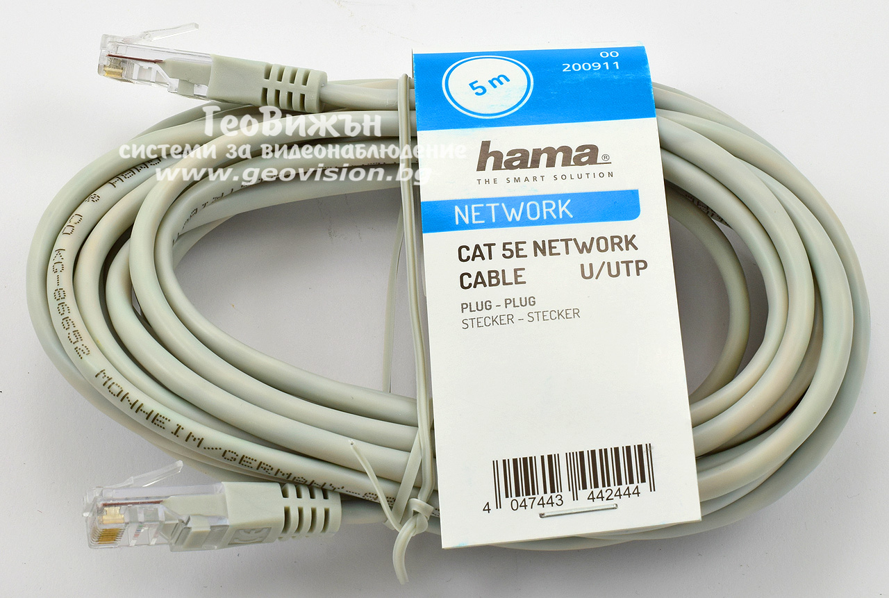 Мрежов LAN кабел HAMA: U/UTP CAT.5e, кримпнати RJ45 конектори - 5 метра