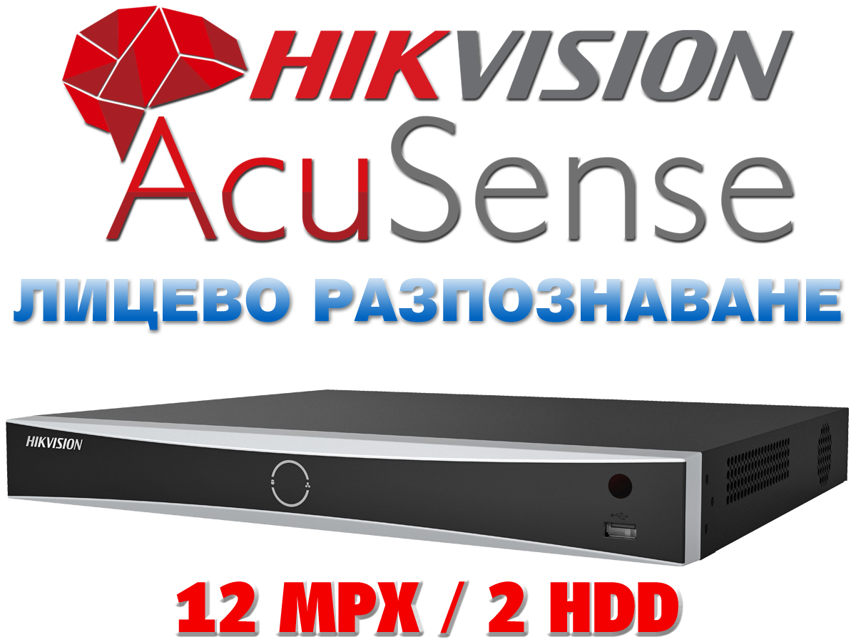 8 канален професионален 4K AcuSense IP мрежов видеорекордер HIKVISION: DS-7608NXI-K2(D). Поддържа 8 мрежови IP камери до 12 MPX. 2 SATA порта