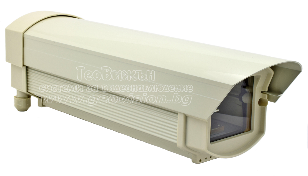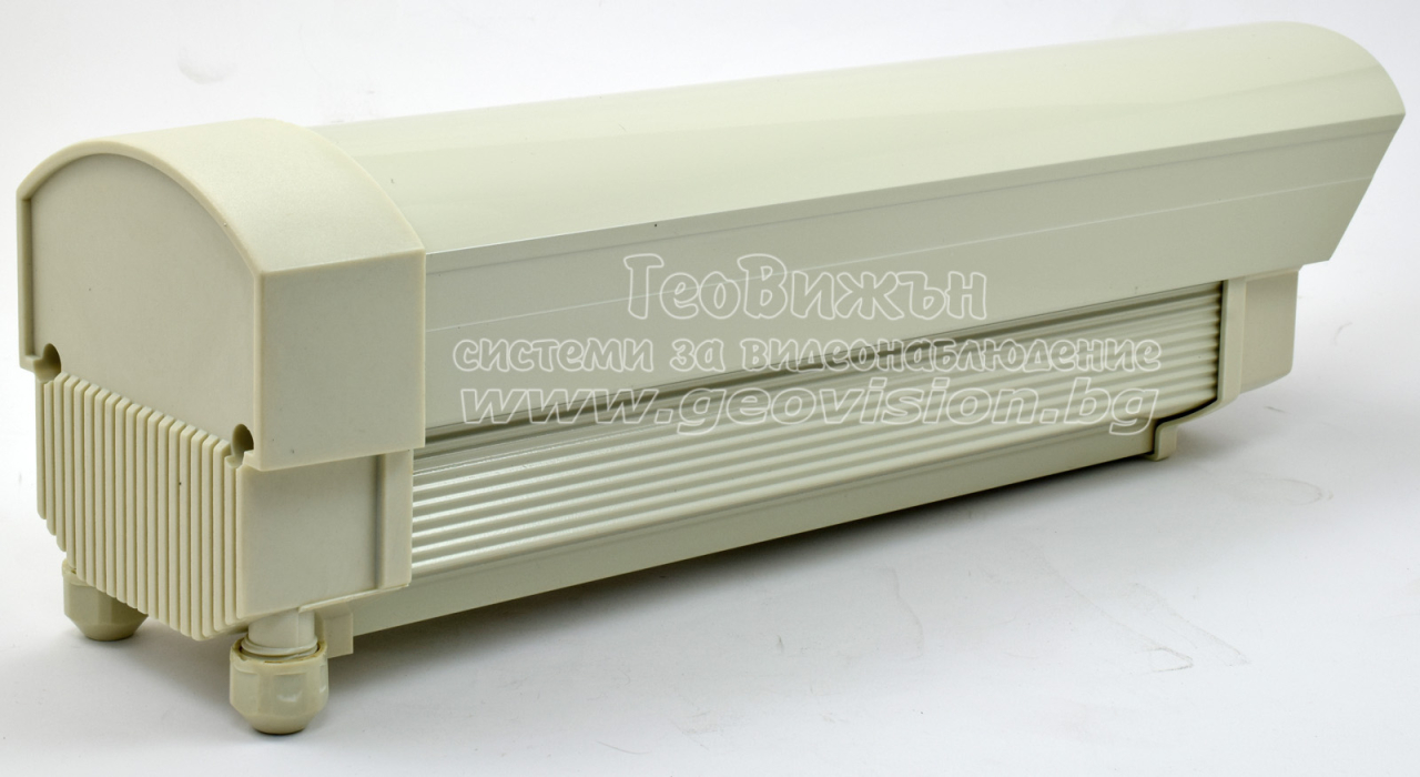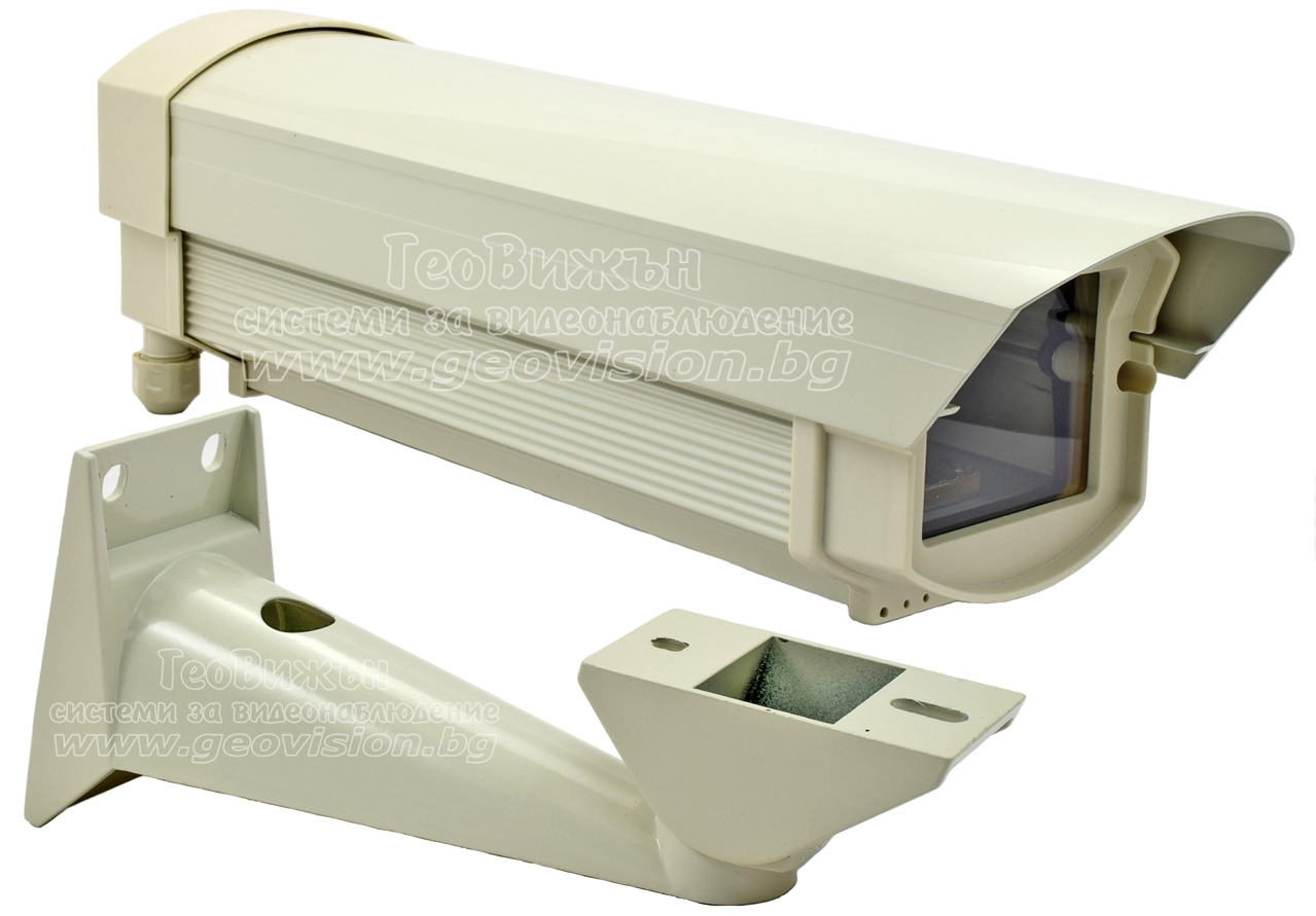 Кожух за камера със стойка, отопление и козирка: STR-601LH. Размери: 388x110x100 mm