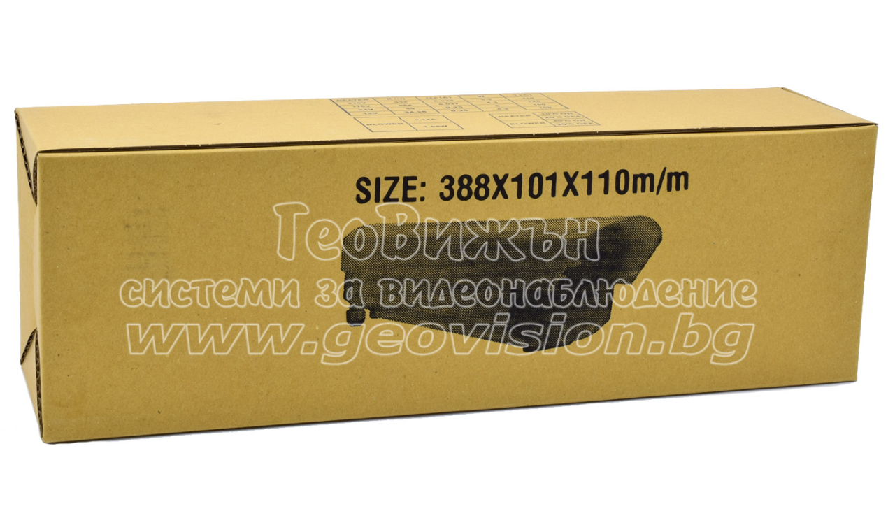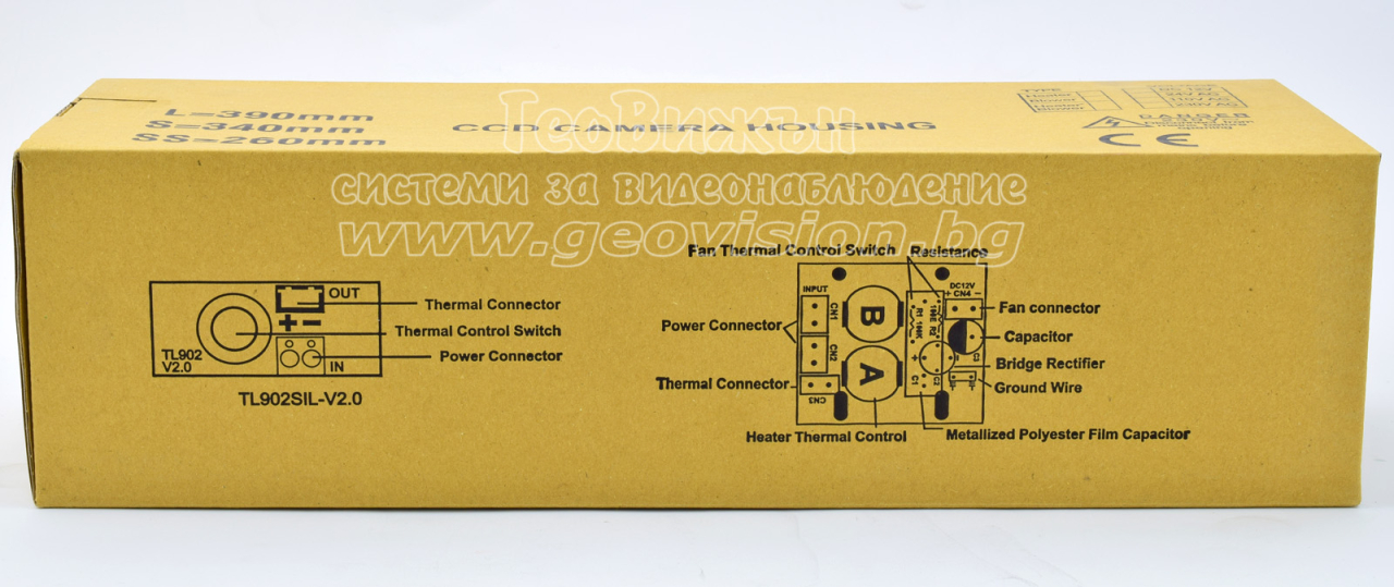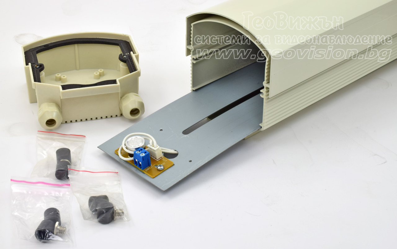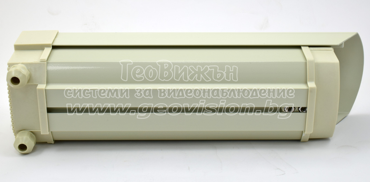 Кожух за камера със стойка, отопление и козирка: STR-601LH. Размери: 388x110x100 mm