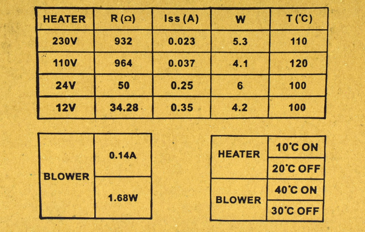 Нагревател: включва на +10 0С, изключва на +20 0С