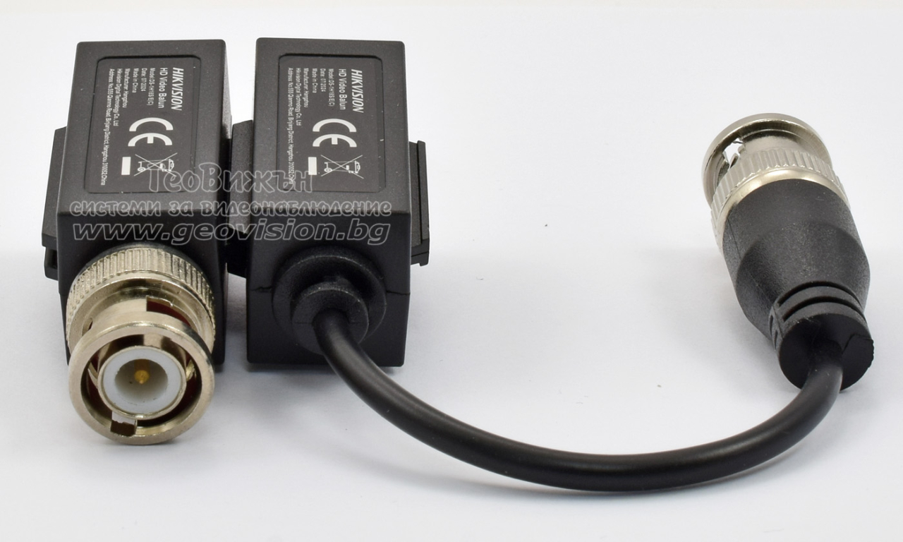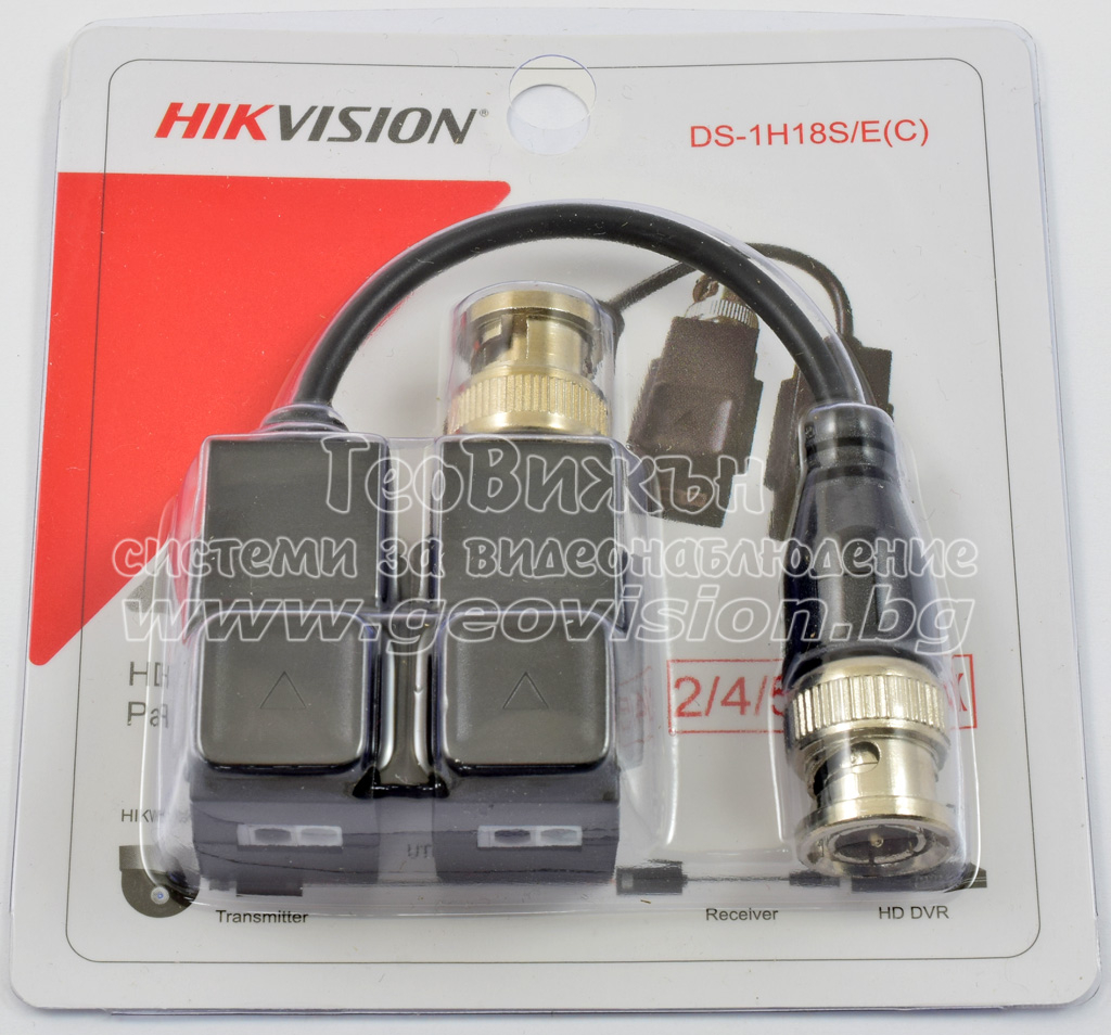 HIKVISION DS-1H18S/E(C): 1 канален пасивен 4K видео балун за пренос на видео сигнал по UTP кабел. Комплект с трансмитер и рисийвър