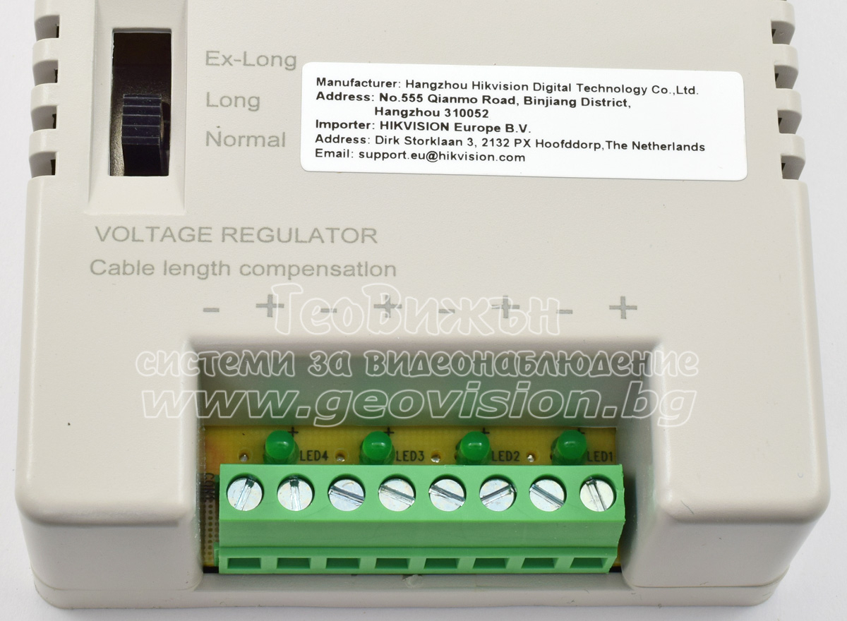 Функция за преодоляване пад на напрежението при много дълги трасета. Гарантира, че дори ако захранването е монтирано далеч от камерите, те ще получат необходимото им стабилно 12 VDC.