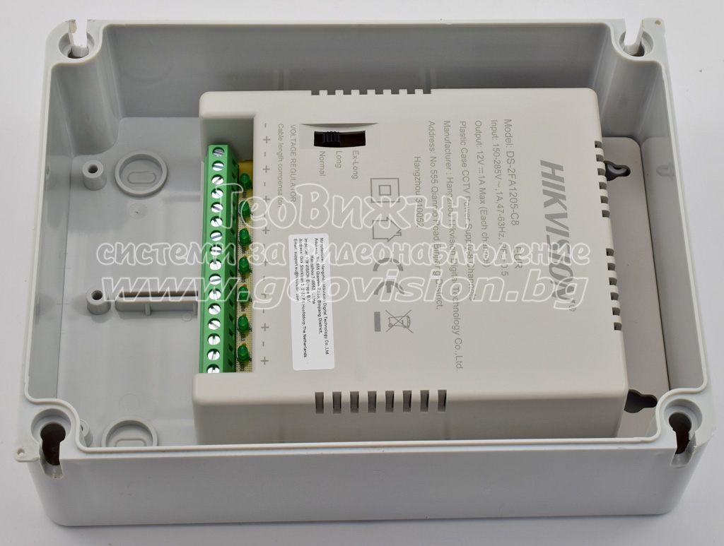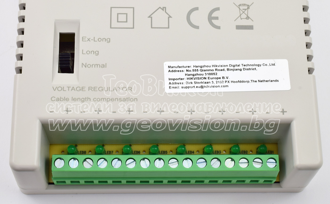 Функция за преодоляване пад на напрежението при много дълги трасета. Гарантира, че дори ако захранването е монтирано далеч от камерите, те ще получат необходимото им стабилно 12 VDC.